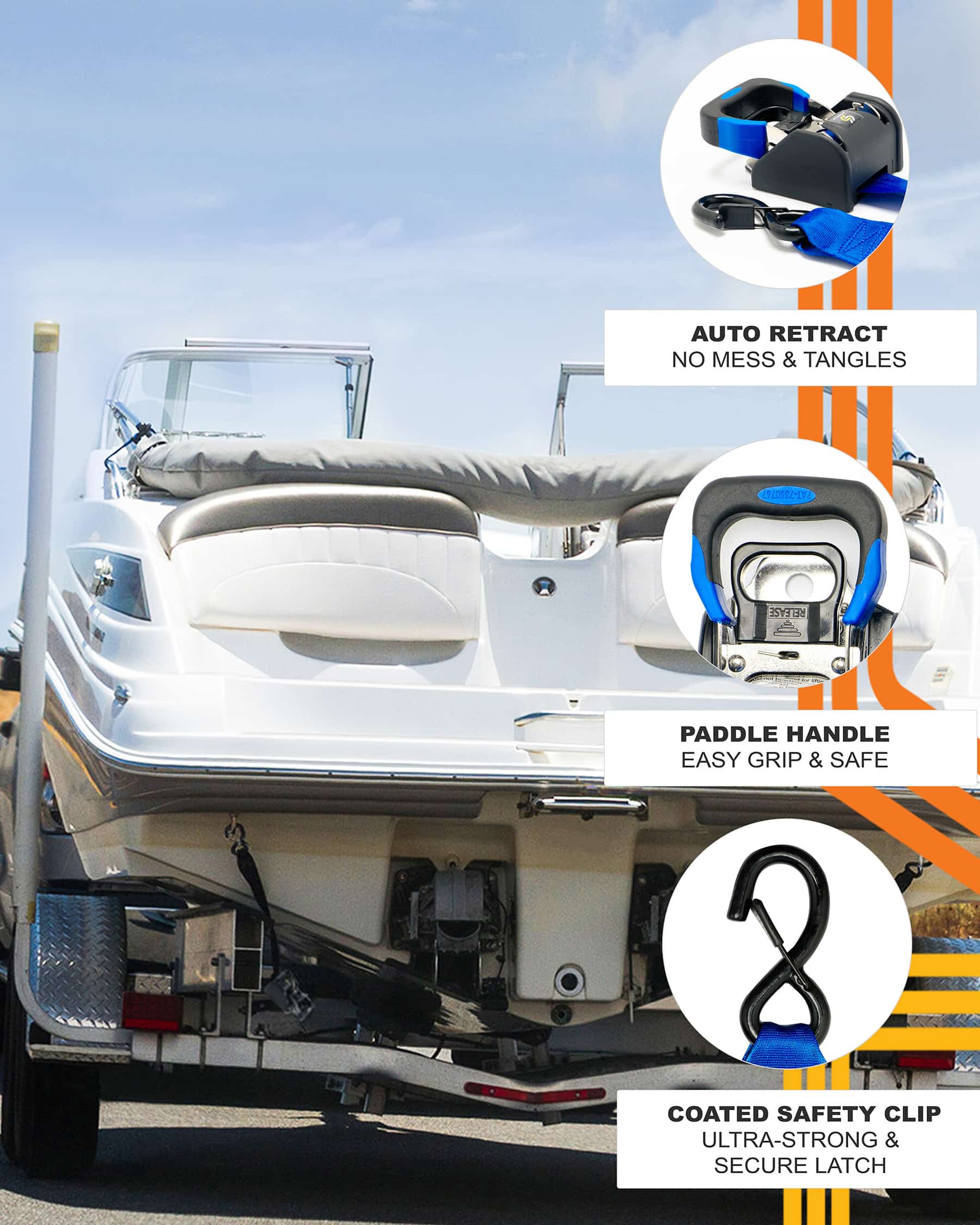 Keep boats and other power watercraft safely secured on your trailer with durable straps that’ll keep them in place. Releasing them is incredibly simple, too!